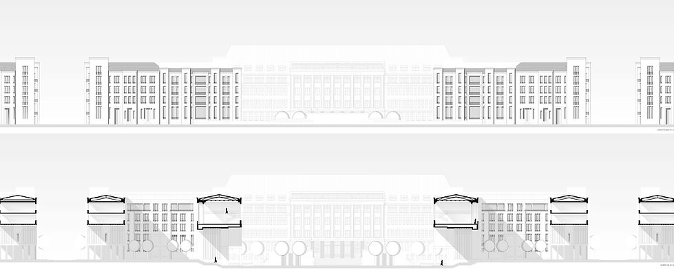 Daran anschließend sollen die neu geschaffenen Strukturen nicht nur formal an die Architektursprache jener Zeit anschließen, sondern auch funktional ein breites Angebot von Wohnraum und Gewerbeflächen bieten. Dabei fungieren die Verkehrsströme, bestehend aus Straßenbahn, Autoverkehr, Radverkehr, Zugverkehr und auch der fußläufige Personenverkehr als belebende -Adern- und werden ihrer Bedeutung entsprechend architektonisch thematisiert.